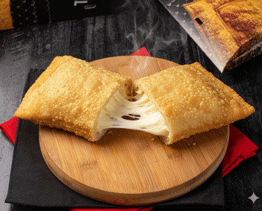 Pastel crocante recheado com uma porção generosa de queijo.